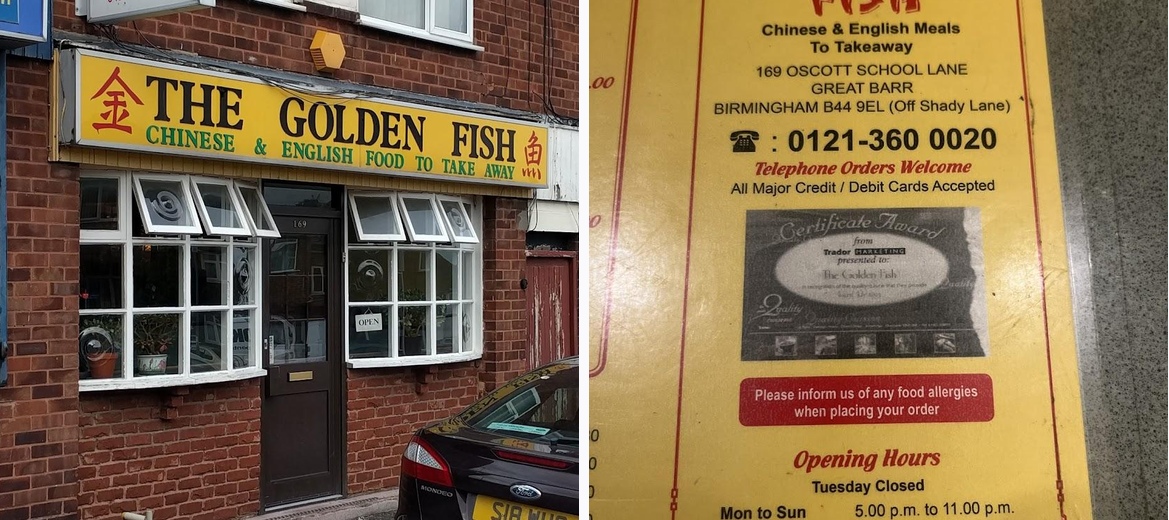 Welcome to The Golden Fish, a delightful Chinese takeaway and restaurant located in Birmingham. With a casual atmosphere, we offer a diverse menu perfect for dinner, whether you're dining solo or with friends. Enjoy popular dishes like our flavorful Beef in Black Bean and mouthwatering Egg Fried Rice, prepared to satisfy your cravings. Our establishment is wheelchair accessible and provides amenities like free street parking, takeaway options, and late-night food. Reservations are welcomed, and we accept various payment methods for your convenience. Visit us for a quick bite or a memorable meal experience!The standout feature of The Golden Fish is its authentic Chinese flavors, consistently impressing diners. Customers rave about the beef in black bean sauce and the perfectly cooked egg fried rice, both of which exemplify the restaurant's commitment to quality. Many visitors appreciate the efficient service, with low waiting times even during busy hours. The late-night food option makes it a go-to spot for those looking for hearty meals when other places are closed. Regulars appreciate the value for money, especially with generous portion sizes.